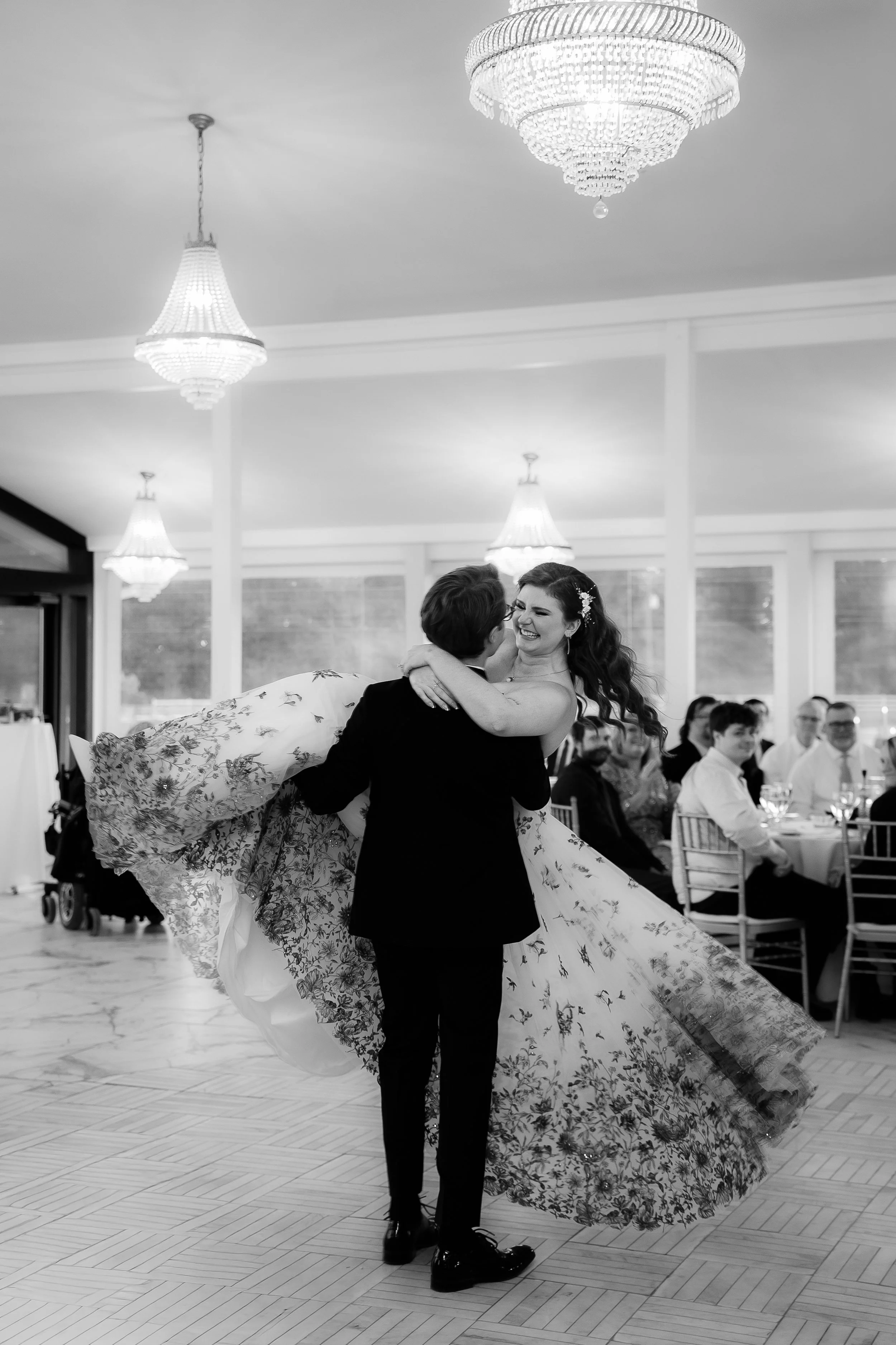 A high-energy celebration filled with laughter, heartfelt speeches, and a ceremony officiated by their best friend, ending the night with portraits in a hotel lobby bar.